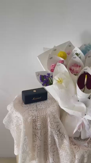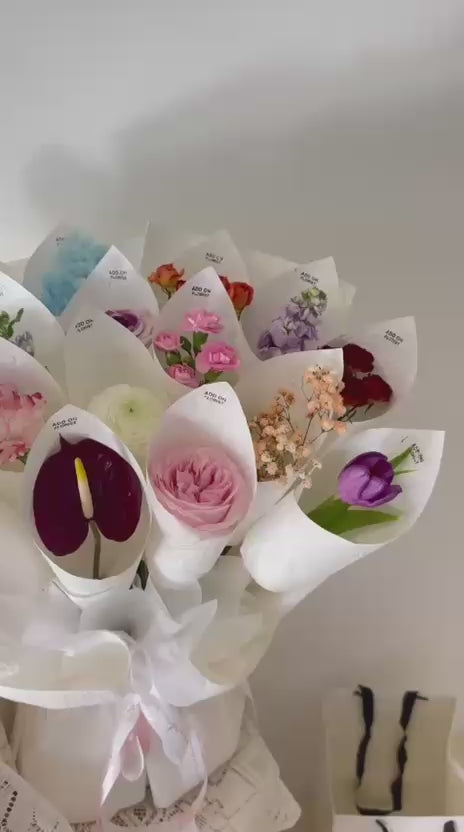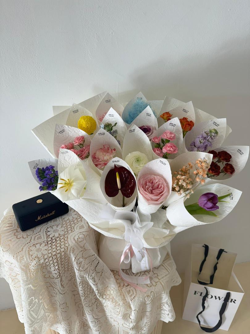 • Each bloom is individually wrapped, giving every flower its own spotlight.