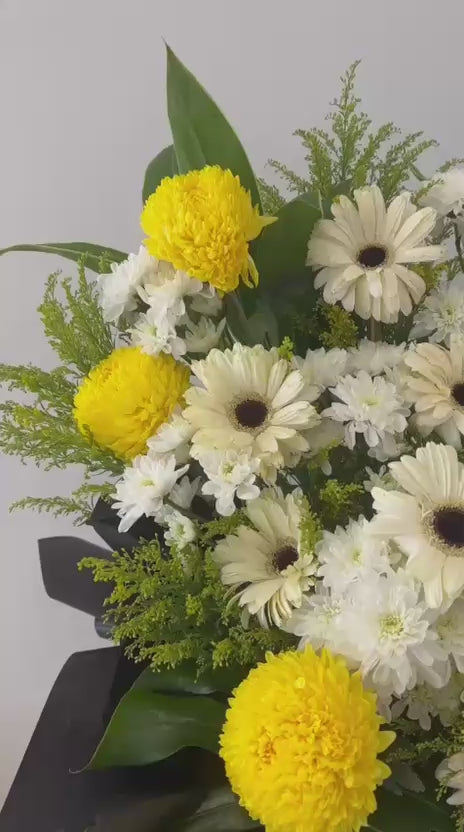 • Yellow pom-poms bring comfort and warmth amid sorrow