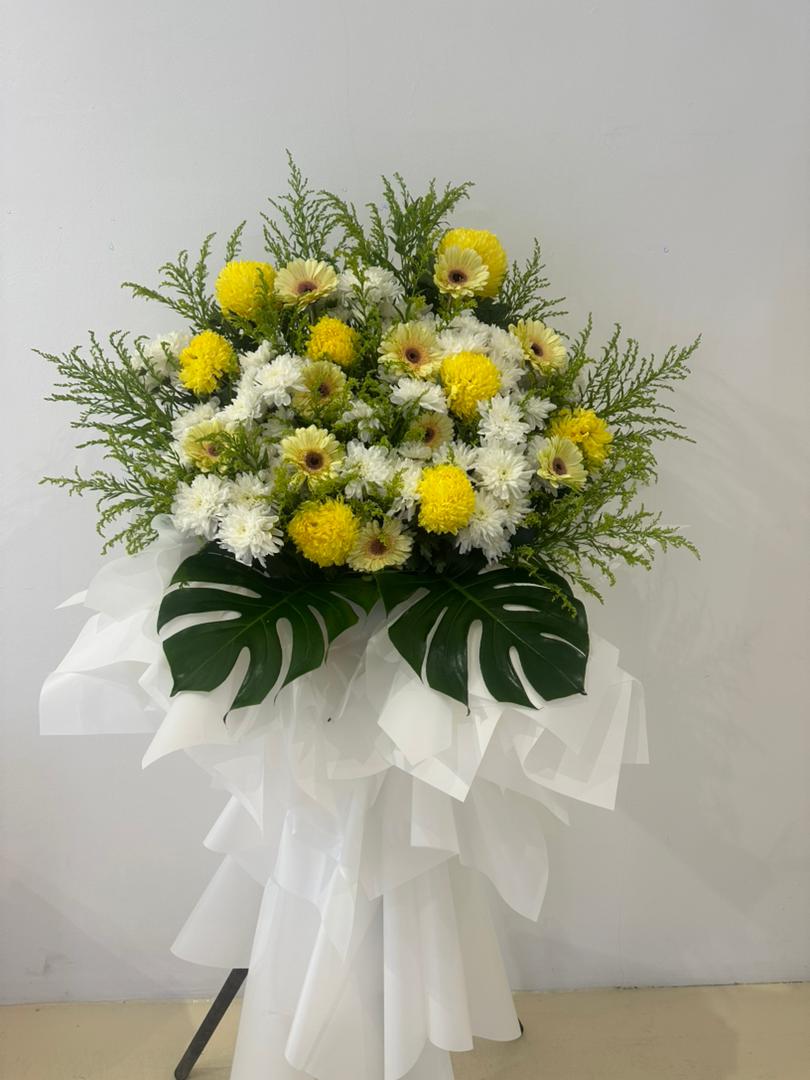 • Styled in a soft white wrap for a dignified and respectful presentation.