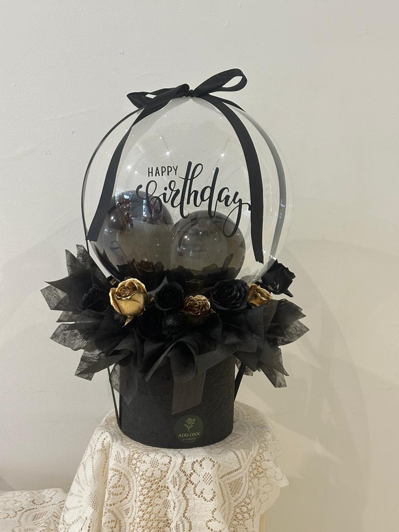 • Featuring RM1,000 cash elegantly arranged beneath a crystal-clear birthday balloon, creating a bold yet refined luxury statement.