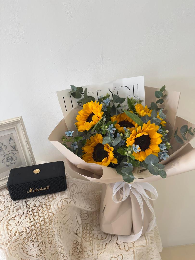 • Features vibrant sunflowers as the main bloom, symbolizing hope and positive energy