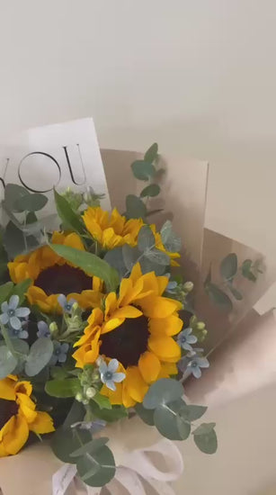 • Wrapped in nude beige paper to highlight the bright yellow blooms with a modern, elegant tone