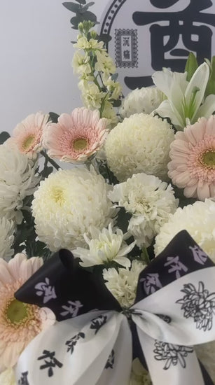 • 以白菊与浅色扶郎花为主花,寓意纯净与思念。